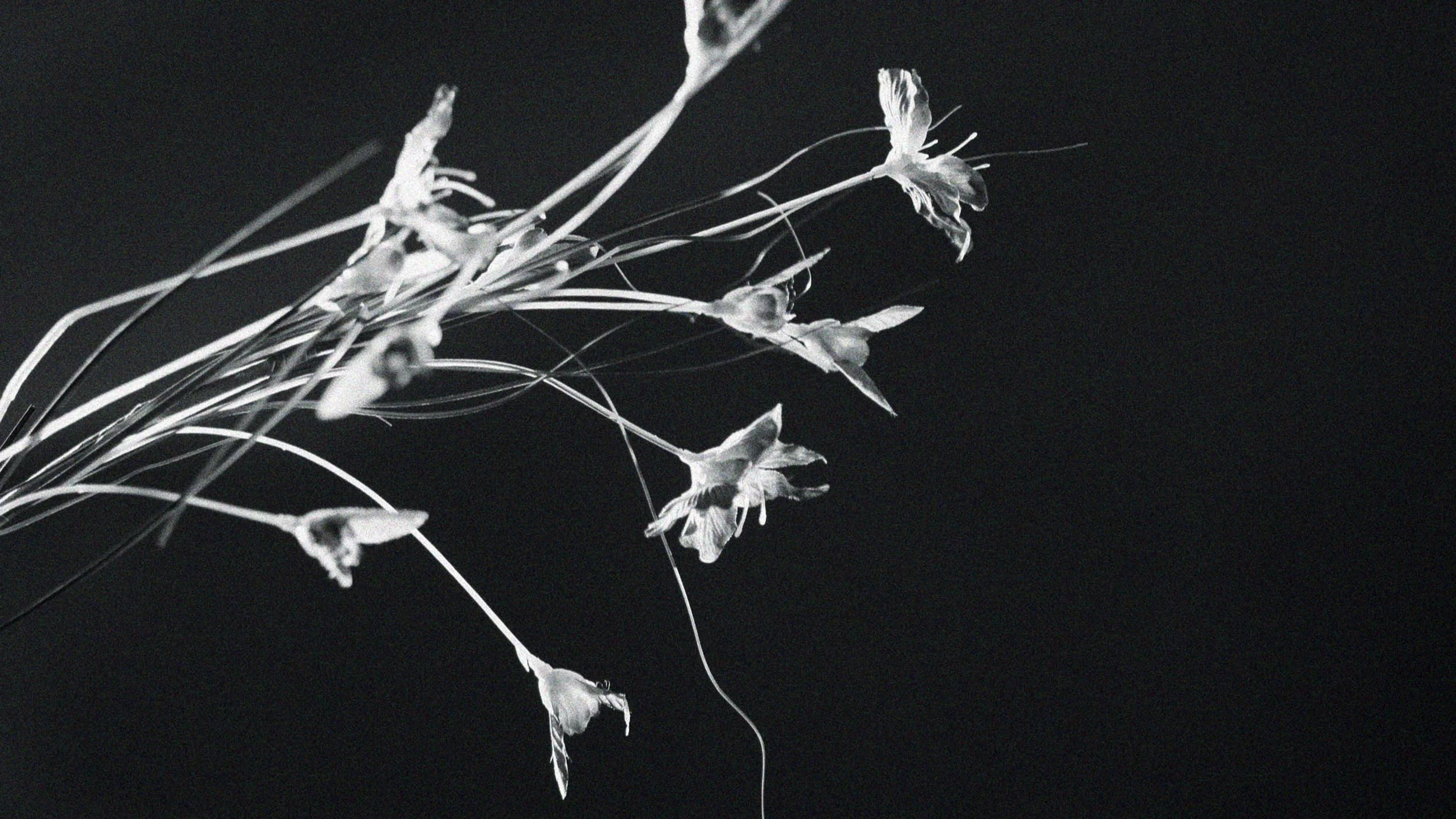 Shot in stop-motion animation, the film contains more than 9400 juxtaposed photographs that were needed to produce the movement. Grandmaison took 24 pictures per second, then for each five or six shot moved the lighting set up in the studio and also moved the camera a few millimeters for each shot, to create a monochrome strobe that shades the limit between reality and the unconscious. The juxtaposition of images deepens the viewer within a perceptual field that could be best described as a fantastic realm of fell, dormant reality. The visual construction of these permutable frames questions our memory’s capacity to compound an archive of the seen. The specific manner used by the artist to illuminate each image results in an impression of luminous frenzy: as Grandmaison says, “A change in illumination that one can observe on the petals of the flowers takes place 24 times per second.” This technique has allowed the artist to balance the dichotomy of the natural and the artificial so as to unveil the mechanical movement that gives an impression of life on the flowers. Staccato sequences of silent close-up shots describe the arrangement of polyester flowers, as the interplay of light and shadow marks the artist’s ability to convey technical acuity into dreamy unconsciousness. The play of light and the artificial creates an almost romantic void where elements are not to be decoded, but seen through their perfect illusion. The artist’s intent is not to articulate a discursive position, to create the explicit image of a thought; instead, Pascal Grandmaison counters hyper-realism with an intuitive, subjective explanation of phenomena.